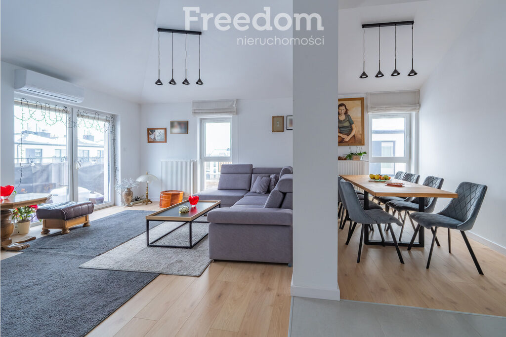 sofa. Strefa ta jest dobrze doświetlona dzięki dużym oknom. Mamy tu